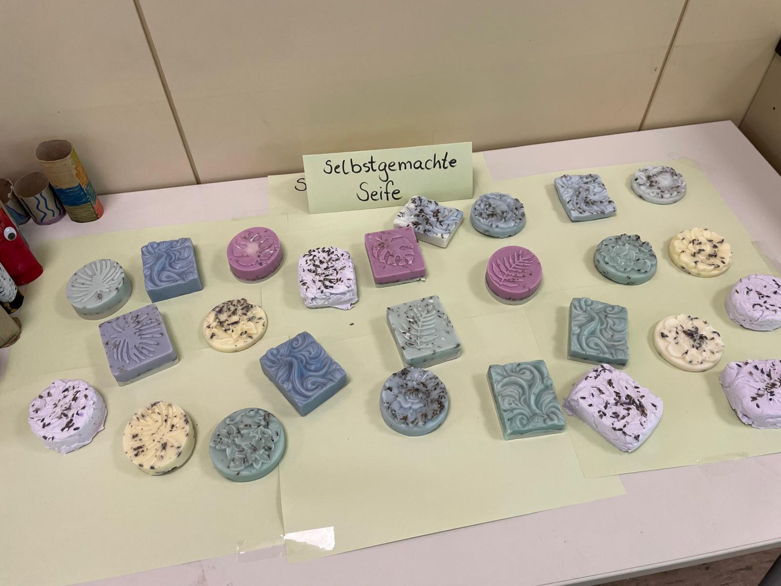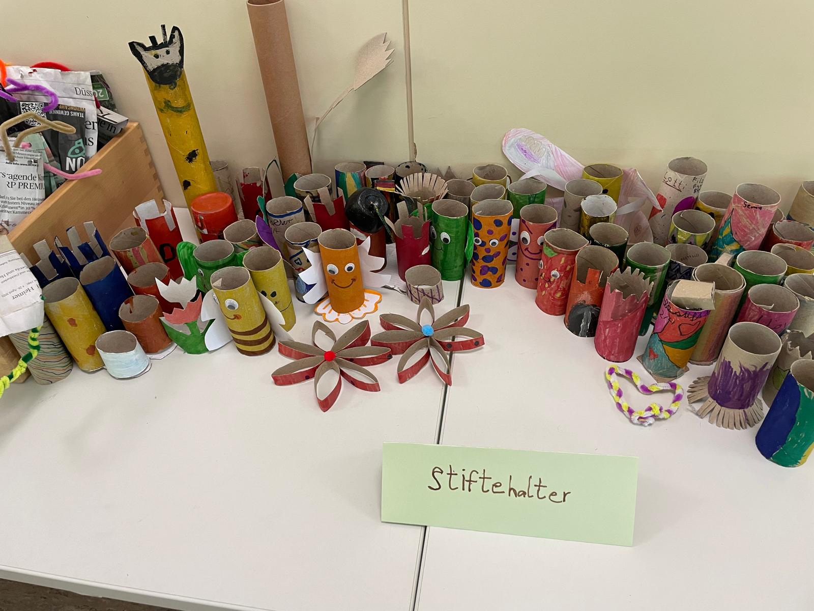 So wurde beispielsweise sowohl in Garath als auch in Hellerhof fleißig zum Thema "Müll" und "Recycling/Upcycling" getüftelt. Hierzu wurde von den Kindern zunächst zuhause und um das Schulgelände herum "vermeintlicher" Müll gesammelt, welcher später zu verschiedensten nützlichen und dekorativen Gegenständen weiterverarbeitet wurde. So sind z.B. Müllroboter, Portemonnaies, Ansteck-Buttons und vieles mehr entstanden. Auch konnten sich die Kinder darin erproben alltägliche und nützliche Dinge wie Seife oder Waschpulver ganz umweltfreundlich selbst zu produzieren, Papier zu schöpfen oder Saatkugeln für bunte Blumenwiesen herzustellen. Passend zum Thema wurden natürlich auch viele Ausflüge unternommen und Umwelt-Experten in die Schule eingeladen.